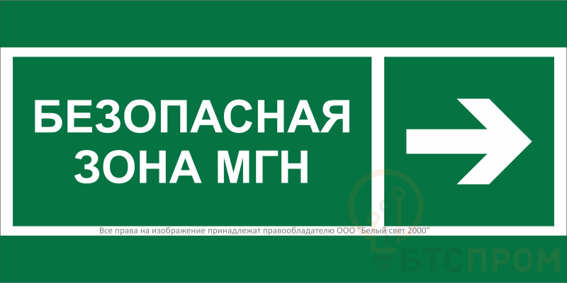 Знак безопасности "Направление движения к безопасной зоне для маломобильных групп населения направо" габаритные размеры 400х200 мм, фактические размеры 400х148 мм, сигнальный цвет - зеленый, контрастный цвет - белый