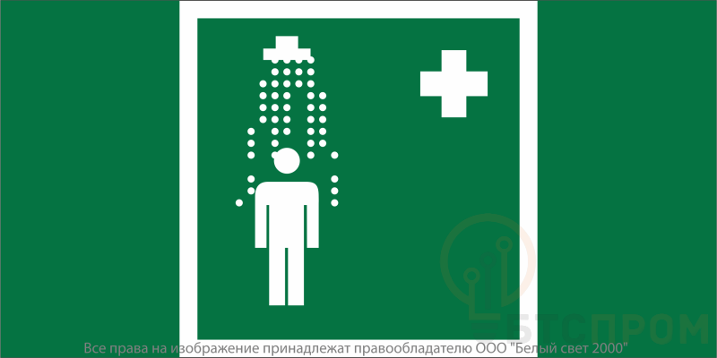 Знак безопасности "Пункт приема гигиенических процедур (душевые)" габаритные размеры 400х200 мм, фактические размеры 200х200 мм, сигнальный цвет - зеленый, контрастный цвет - белый