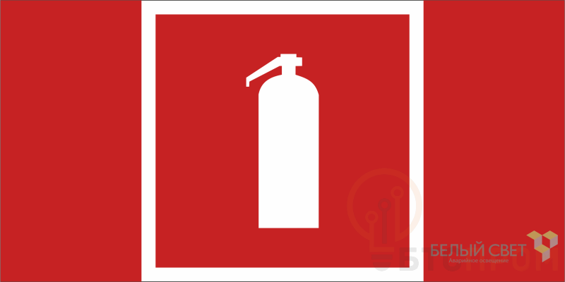 Знак безопасности "Огнетушитель" габаритные размеры 400х200 мм, фактические размеры 200х200 мм, сигнальный цвет - красный, контрастный цвет - белый