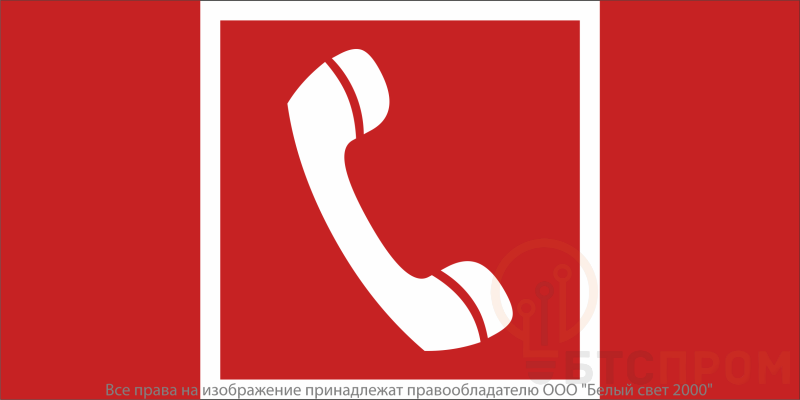 Знак безопасности "Телефон для использования при пожаре (в том числе телефон прямой связи с пожарной охраной)" габаритные размеры 400х200 мм, фактические размеры 200х200 мм, сигнальный цвет - красный, контрастный цвет - белый