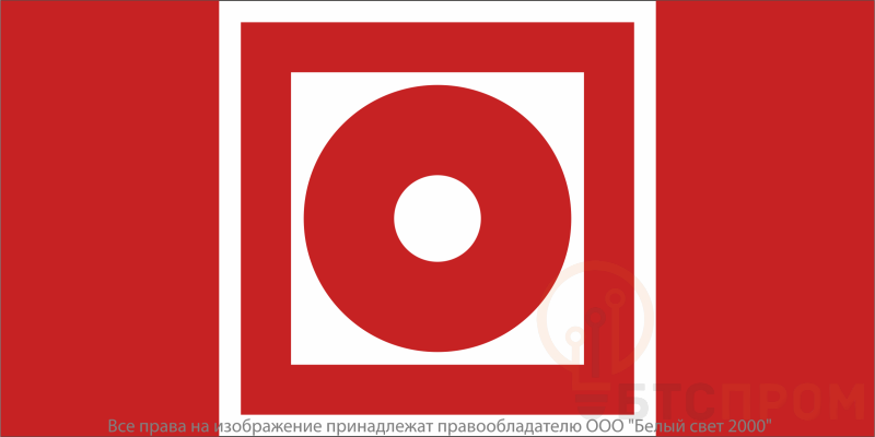 Знак безопасности "Кнопка включения установок (систем) пожарной автоматики" габаритные размеры 400х200 мм, фактические размеры 200х200 мм, сигнальный цвет - красный, контрастный цвет - белый