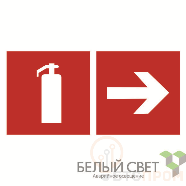 Знак безопасности "Указатель движения к огнетушителю направо" габаритные размеры 400х200 мм, фактические размеры 400х200 мм, сигнальный цвет - красный, контрастный цвет - белый