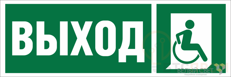 Знак безопасности BL-6020B.E61 "Указ. выхода для инвал. в креслах колясках (прав.)" Белый свет a22442