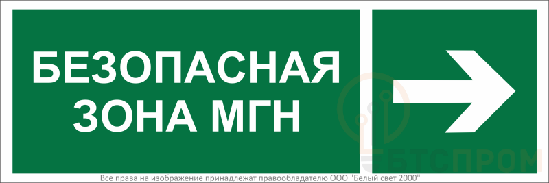 Знак безопасности "Направление движения к безопасной зоне для маломобильных групп населения направо", габаритные размеры 600х200 мм, фактические размеры 600х200 мм, сигнальный цвет - зеленый, контрастный цвет - белый