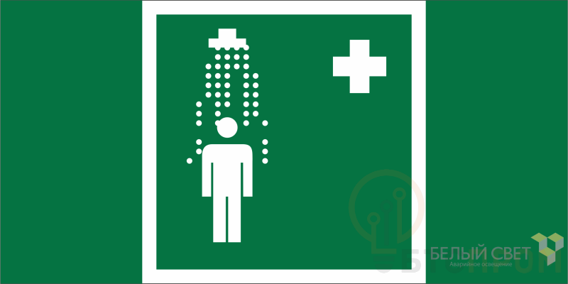 Знак безопасности "Пункт приема гигиенических процедур (душевые)" габаритные размеры 160х80 мм, фактические размеры 80х80 мм, сигнальный цвет - зеленый, контрастный цвет - белый