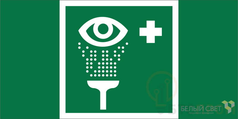 Знак безопасности "Пункт обработки глаз" габаритные размеры 160х80 мм, фактические размеры 80х80 мм, сигнальный цвет - зеленый, контрастный цвет - белый