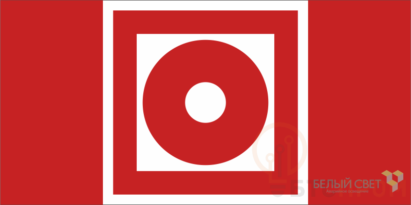 Знак безопасности "Кнопка включения установок (систем) пожарной автоматики" габаритные размеры 160х80 мм, фактические размеры 80х80 мм, сигнальный цвет - красный, контрастный цвет - белый
