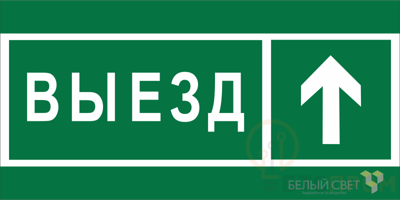 Знак безопасности "Направление к воротам выезда прямо" габаритные размеры 160х80 мм, фактические размеры 160х59 мм, сигнальный цвет - зеленый, контрастный цвет - белый