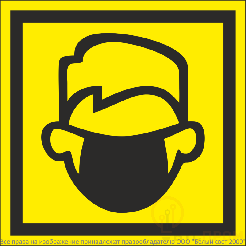 Знак безопасности NPU-1818.EC10 "Ношение маски обязательно" — это информационная табличка, предназначенная для информирования и напоминания о необходимости использования средств индивидуальной защиты органов дыхания. Знак выполнен в белом цвете с четкой черной пиктограммой и текстовой надписью, что обеспечивает высокую видимость и быстрое восприятие информации.