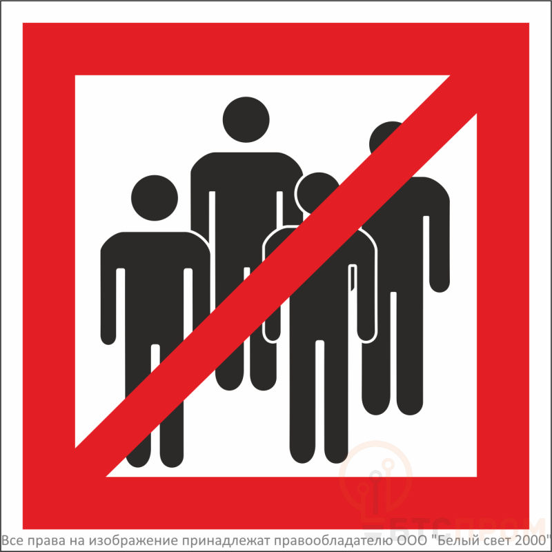 Знак безопасности NPU-1818.EC14 "Сбор людей запрещен" — это высококачественный пластиковый знак, предназначенный для четкого и однозначного запрета массового скопления людей на определенной территории. Знак выполнен в белом цвете с контрастной черной пиктограммой и красной перечеркивающей линией, что обеспечивает его excellentную видимость и быстрое распознавание.