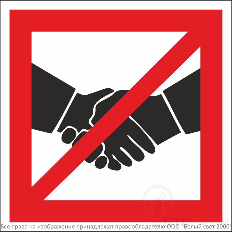 Знак безопасности NPU-1818.EC15 «Рукопожатия запрещены» — это специализированное средство визуального информирования, предназначенное для предупреждения распространения инфекций и поддержания санитарно-эпидемиологического благополучия в общественных местах.