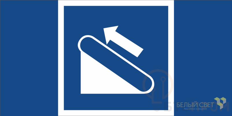 Знак безопасности "Эскалатор (подъемник)", габаритные размеры 200х100 мм, фактические размеры 200х100 мм, сигнальный цвет - синий, контрастный цвет - белый