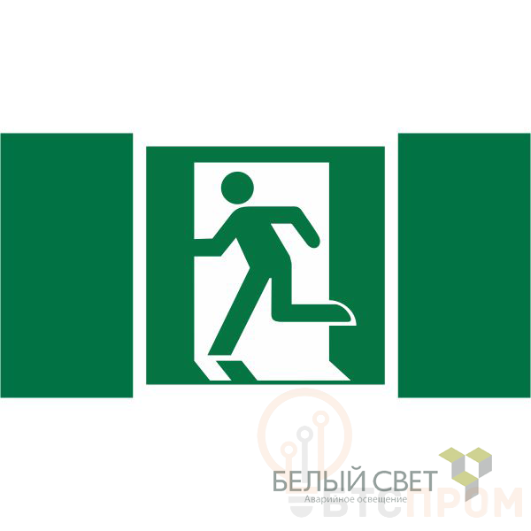 Знак безопасности "Выход здесь (левосторонний)", габаритные размеры 200х100 мм, фактические размеры 200х100 мм, сигнальный цвет - зеленый, контрастный цвет - белый