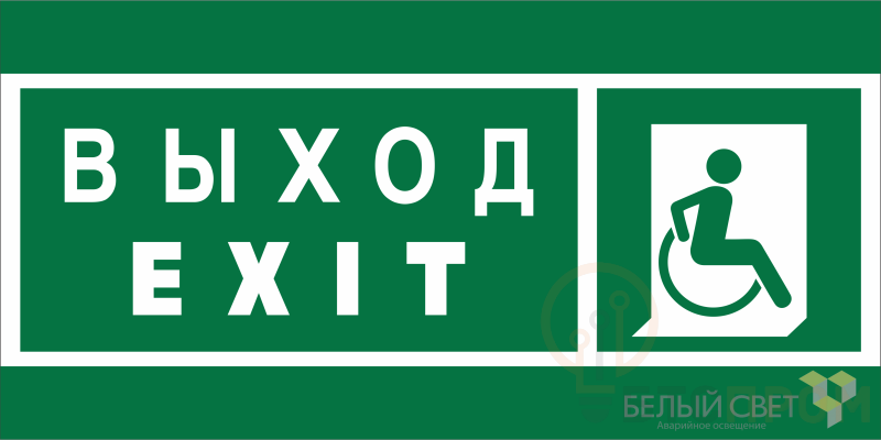 Знак безопасности NPU-2110.E63 "Указатель выхода для инвалидов в креслах колясках (правосторонний)" Белый свет a20391