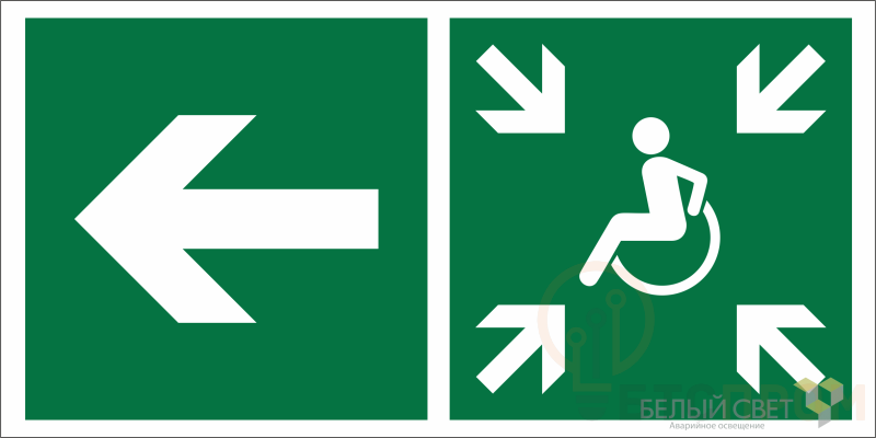Знак безопасности NPU-2110.E75 "Направление движения к пункту сбора (безопасной зоне) МГН налево" Белый свет a20403