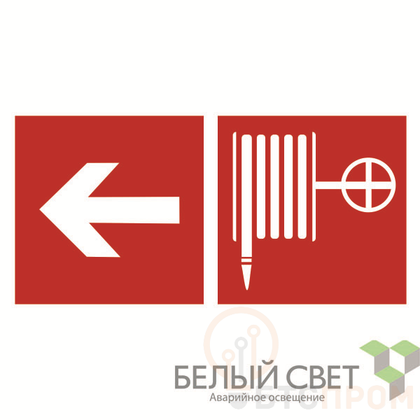 Знак безопасности "Указатель движения к пожарному крану налево", габаритные размеры 200х100 мм, фактические размеры 200х100 мм, сигнальный цвет - красный, контрастный цвет - белый