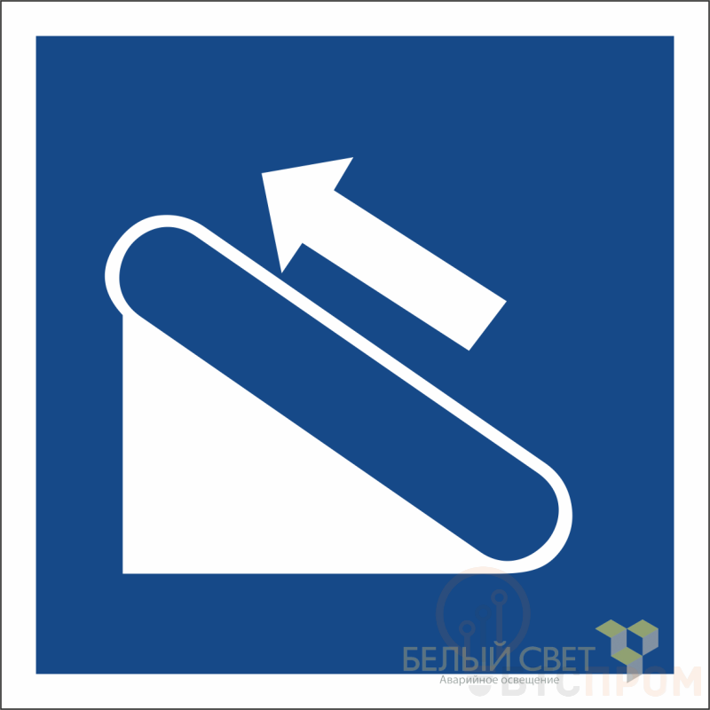 Знак безопасности "Эскалатор (подъемник)", габаритные размеры 250х250 мм, фактические размеры 250х250 мм, сигнальный цвет - синий, контрастный цвет - белый