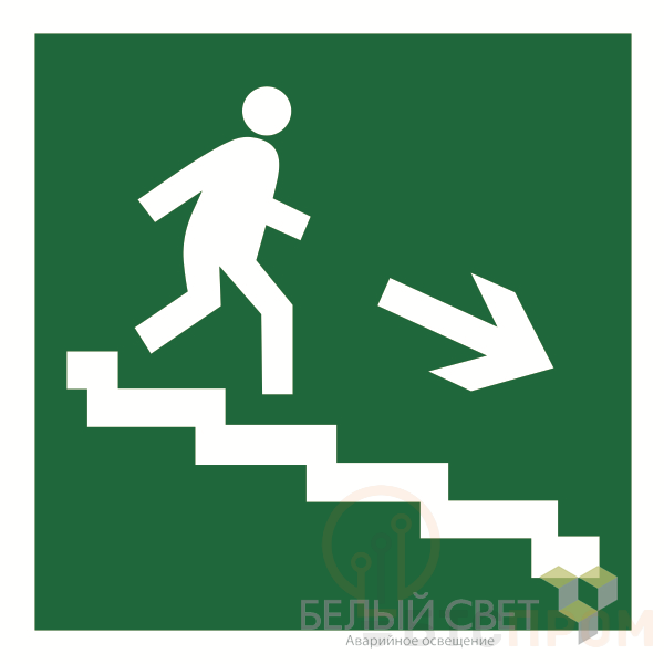 Знак безопасности "Направление к эвакуационному выходу направо", габаритные размеры 250х250 мм, фактические размеры 250х250 мм, сигнальный цвет - зеленый, контрастный цвет - белый