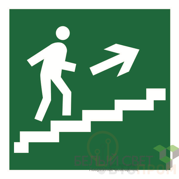 Знак безопасности "Направление к эвакуационному выходу по лестнице вверх", габаритные размеры 250х250 мм, фактические размеры 250х250 мм, сигнальный цвет - зеленый, контрастный цвет - белый