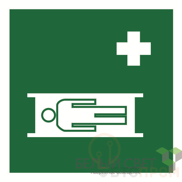 Знак безопасности "Средства выноса (эвакуации) пораженных", габаритные размеры 250х250 мм, фактические размеры 250х250 мм, сигнальный цвет - зеленый, контрастный цвет - белый