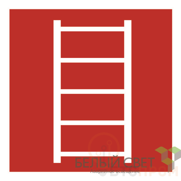 Знак безопасности "Пожарная лестница", габаритные размеры 250х250 мм, фактические размеры 250х250 мм, сигнальный цвет - красный, контрастный цвет - белый