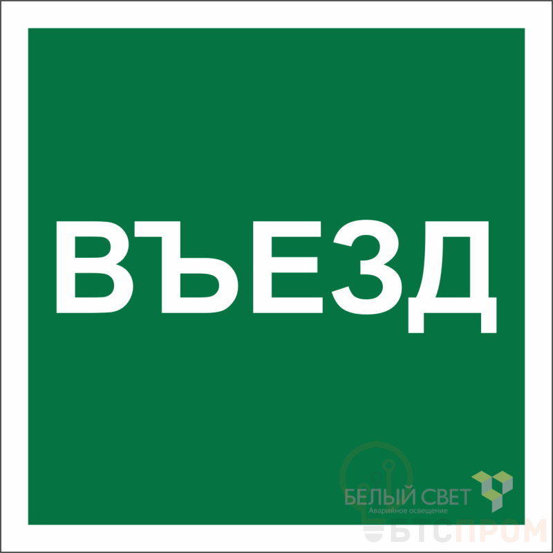 Знак безопасности "Указатель въезда", габаритные размеры 250х250 мм, фактические размеры 250х250 мм, сигнальный цвет - зеленый, контрастный цвет - белый