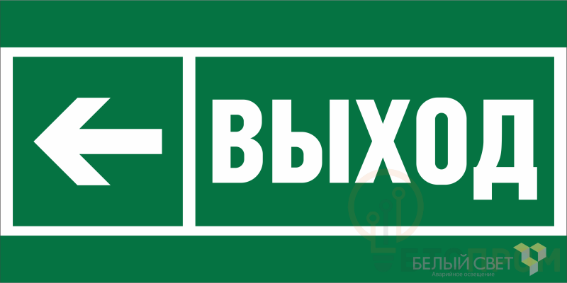 Знак безопасности "Направление к эвакуационному выходу налево" габаритные размеры 270х135 мм, фактические размеры 270х100 мм, сигнальный цвет - зеленый, контрастный цвет - белый
