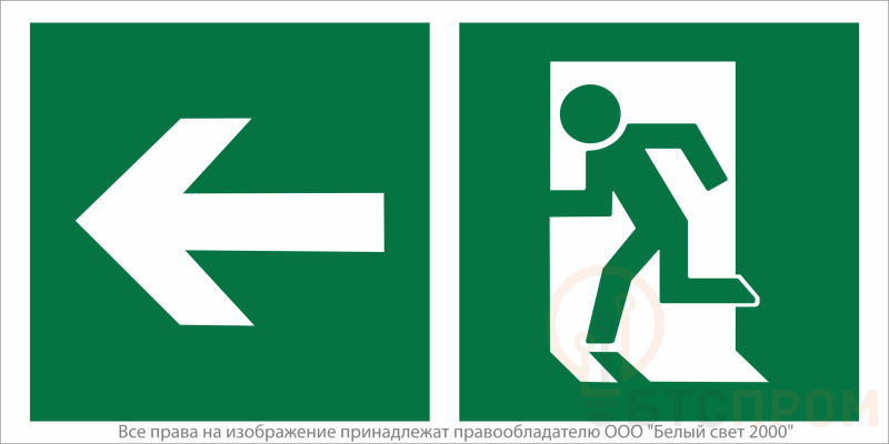 Знак безопасности "Направление к эвакуационному выходу налево" габаритные размеры 270х135 мм, фактические размеры 270х135 мм, сигнальный цвет - зеленый, контрастный цвет - белый