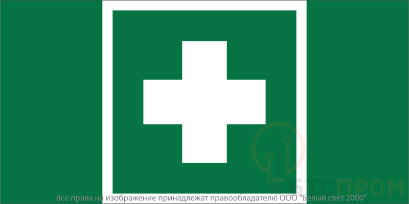 Знак безопасности "Аптечка первой медицинской помощи" габаритные размеры 270х135 мм, фактические размеры 135х135 мм, сигнальный цвет - зеленый, контрастный цвет - белый