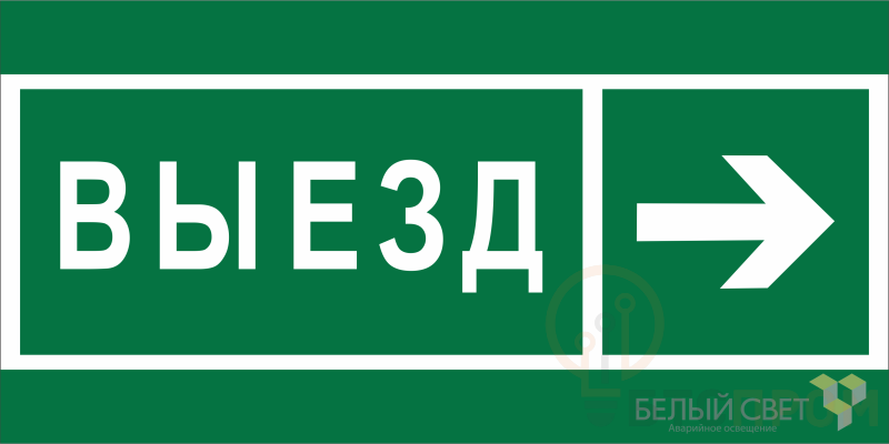 Знак безопасности "Направление к воротам выезда направо" габаритные размеры 270х135 мм, фактические размеры 270х100 мм, сигнальный цвет - зеленый, контрастный цвет - белый