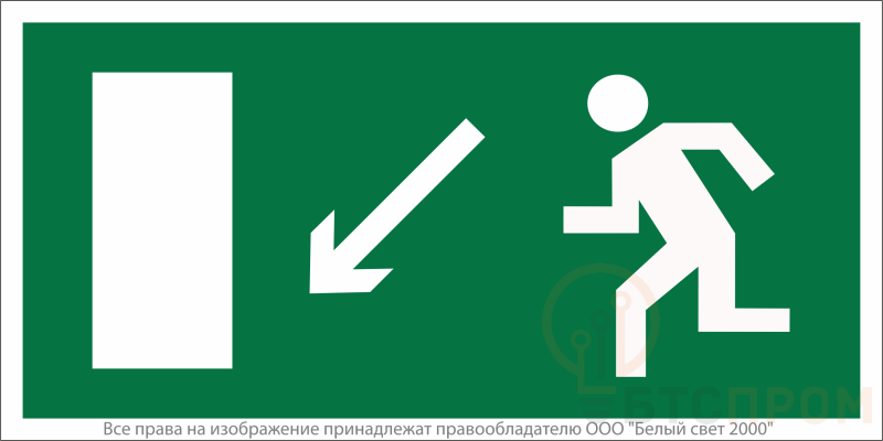 Знак безопасности NPU-3015.E08"Напр. к эвакуационному выходу налево вниз" Белый свет a25508 фото в каталоге от BTSprom.by