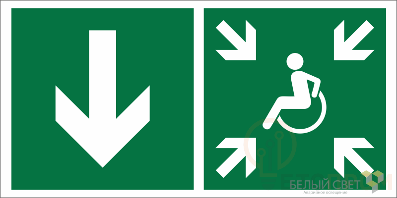 - Назначение: указатель направления к пункту сбора (безопасной зоны) для МГН.