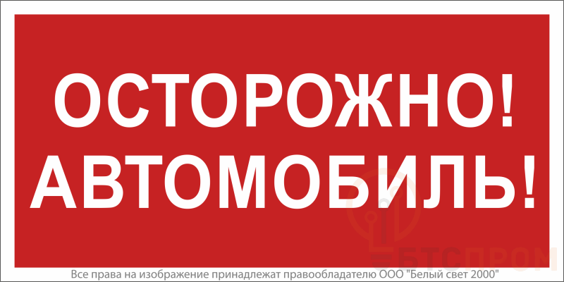 Знак безопасности NPU-3015.N09"Осторожно автомобиль" Белый свет a25485 фото в каталоге от BTSprom.by