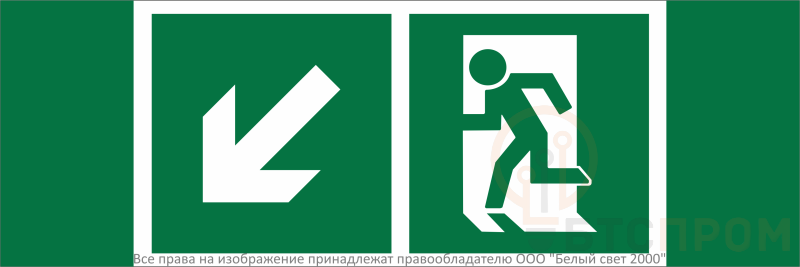 - Надпись: "Напр. к эвакуационному выходу налево вниз"