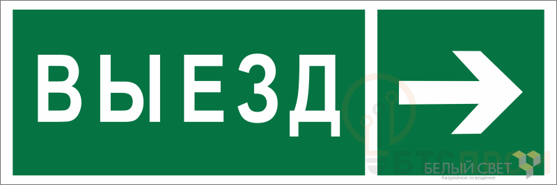 Знак безопасности "Направление к воротам выезда направо", габаритные размеры 330х110 мм, фактические размеры 330х110 мм, сигнальный цвет - зеленый, контрастный цвет - белый