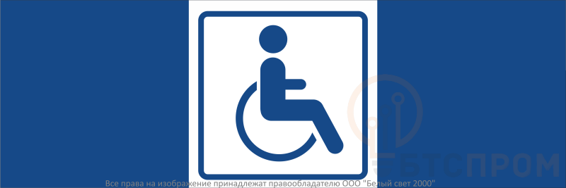 Знак безопасности NPU-3413.D01 "Символ доступности для инвалидов" предназначен для информирования о доступности объектов и услуг для маломобильных групп населения. Изделие выполнено в виде стилизованного изображения человека в инвалидной коляске на белом фоне. Знак изготавливается из прочных самоклеящихся пленок высокого качества, что обеспечивает долгий срок службы и устойчивость к воздействию внешней среды. Лицевая поверхность защищена устойчивым к истиранию ламинатом.