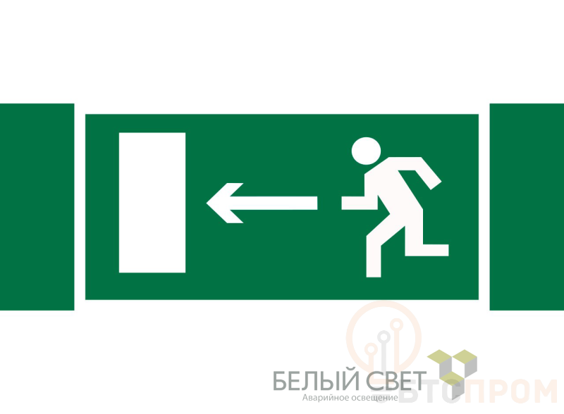 Знак безопасности "Направление к эвакуационному выходу налево" габаритные размеры 340х125 мм, фактические размеры 250х125 мм, сигнальный цвет - зеленый, контрастный цвет - белый