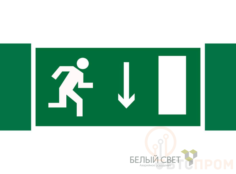 Знак безопасности "Указатель двери эвакуационного выхода (правосторонний)" габаритные размеры 340х125 мм, фактические размеры 250х125 мм, сигнальный цвет - зеленый, контрастный цвет - белый
