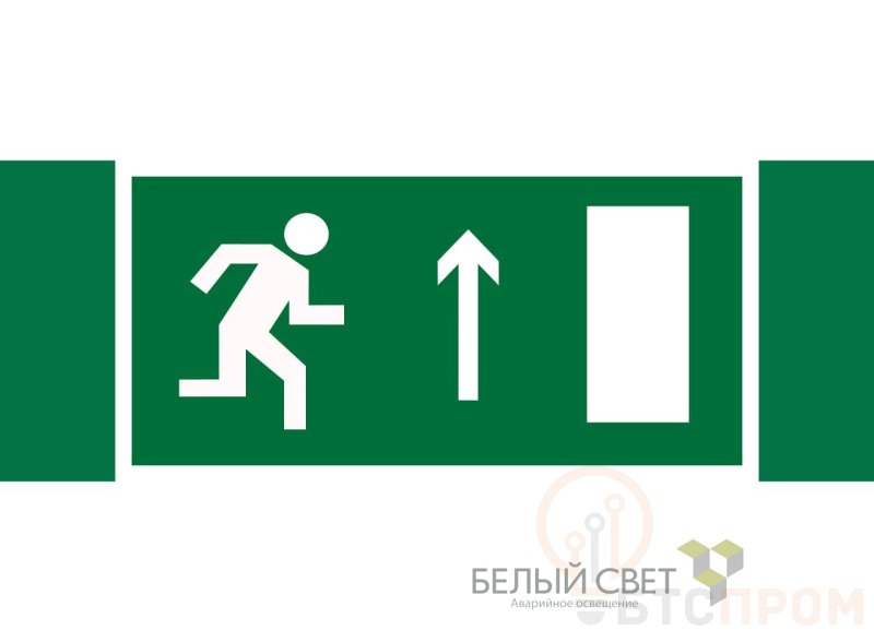 Знак безопасности "Направление к эвакуационному выходу прямо" габаритные размеры 340х125 мм, фактические размеры 250х125 мм, сигнальный цвет - зеленый, контрастный цвет - белый