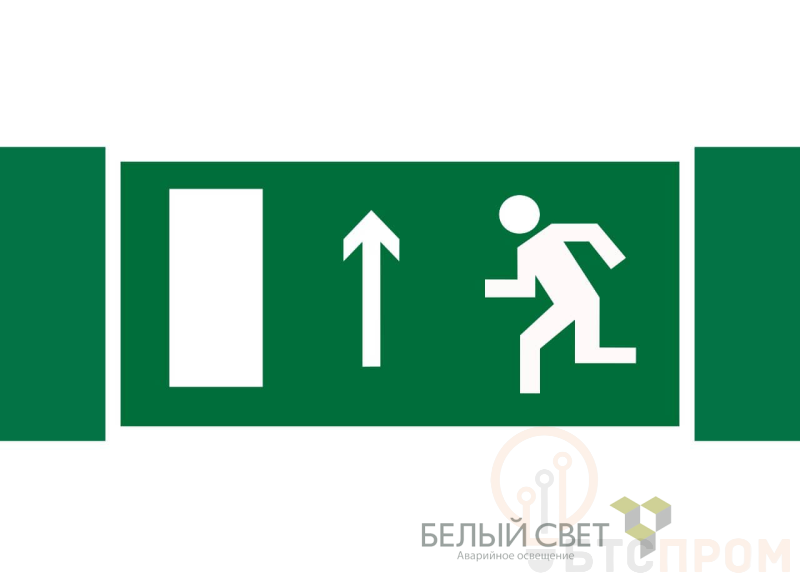 Знак безопасности "Направление к эвакуационному выходу прямо" габаритные размеры 340х125 мм, фактические размеры 250х125 мм, сигнальный цвет - зеленый, контрастный цвет - белый