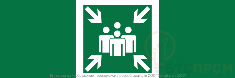 Знак безопасности "Пункт (место) сбора" габаритные размеры 340х125 мм, фактические размеры 125х125 мм, сигнальный цвет - зеленый, контрастный цвет - белый