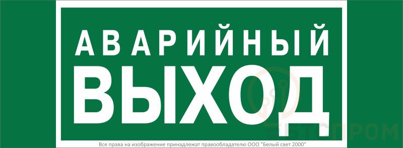 Знак безопасности "Указатель запасного выхода" габаритные размеры 340х125 мм, фактические размеры 250х125 мм, сигнальный цвет - зеленый, контрастный цвет - белый