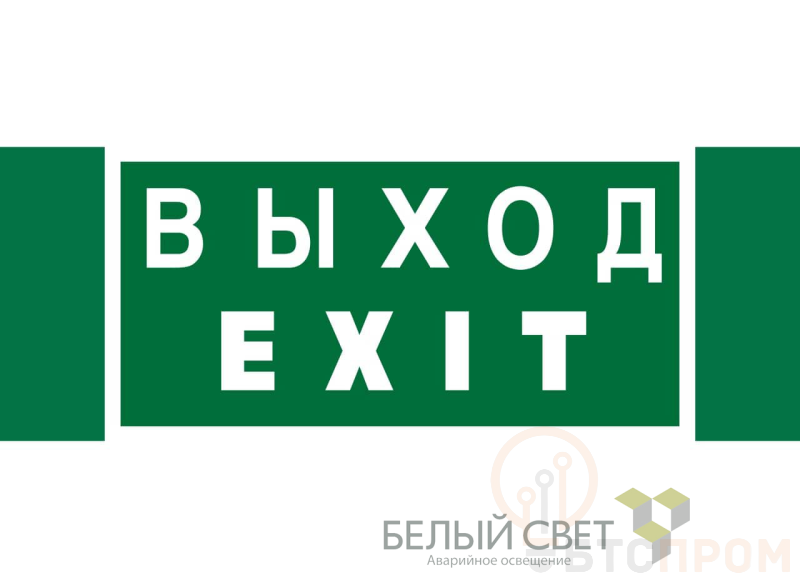 Знак безопасности "Указатель выхода" габаритные размеры 340х125 мм, фактические размеры 250х125 мм, сигнальный цвет - зеленый, контрастный цвет - белый