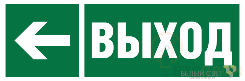 Знак безопасности "Направление к эвакуационному выходу налево" габаритные размеры 340х125 мм, фактические размеры 340х125 мм, сигнальный цвет - зеленый, контрастный цвет - белый
