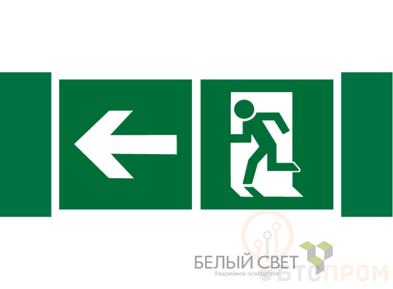 Знак безопасности "Направление к эвакуационному выходу налево" габаритные размеры 340х125 мм, фактические размеры 250х125 мм, сигнальный цвет - зеленый, контрастный цвет - белый