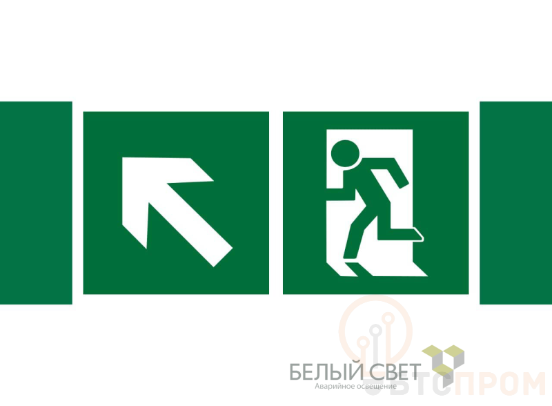 Знак безопасности "Направление к эвакуационному выходу налево вверх" габаритные размеры 340х125 мм, фактические размеры 250х125 мм, сигнальный цвет - зеленый, контрастный цвет - белый