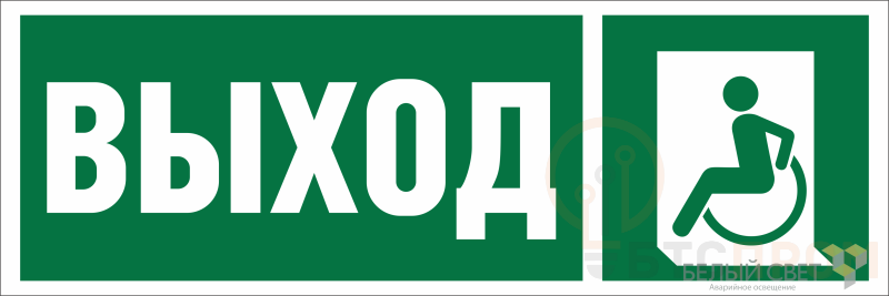 Знак безопасности NPU-3413.E62 "Указ. выхода для инвал. в креслах колясках (лев.)" Белый свет a19921