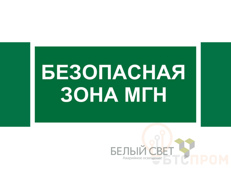 Знак безопасности "Безопасная зона для маломобильных групп" габаритные размеры 340х125 мм, фактические размеры 250х125 мм, сигнальный цвет - зеленый, контрастный цвет - белый