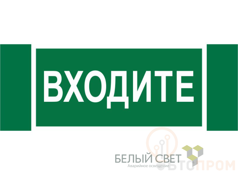 Знак безопасности "Входите" габаритные размеры 340х125 мм, фактические размеры 250х125 мм, сигнальный цвет - зеленый, контрастный цвет - белый