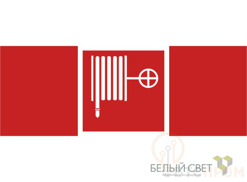 Знак безопасности "Пожарный кран" габаритные размеры 340х125 мм, фактические размеры 125х125 мм, сигнальный цвет - красный, контрастный цвет - белый